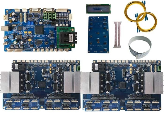 Le système de contrôle huit I3200 principal pour le jet d'encre se compose d'un conseil principal USB3.0 (double version de fibre), de deux conseils principaux, et de quatre panneaux d'adaptateur I3200 tête double.